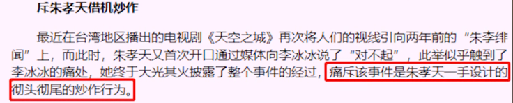 而令人疑惑的是,朱孝天被问到和李冰冰的恋情时,总以不伤害女方为由,避重就轻地回答,还曾表示过对不起李冰冰,但又说自己并不喜欢她。