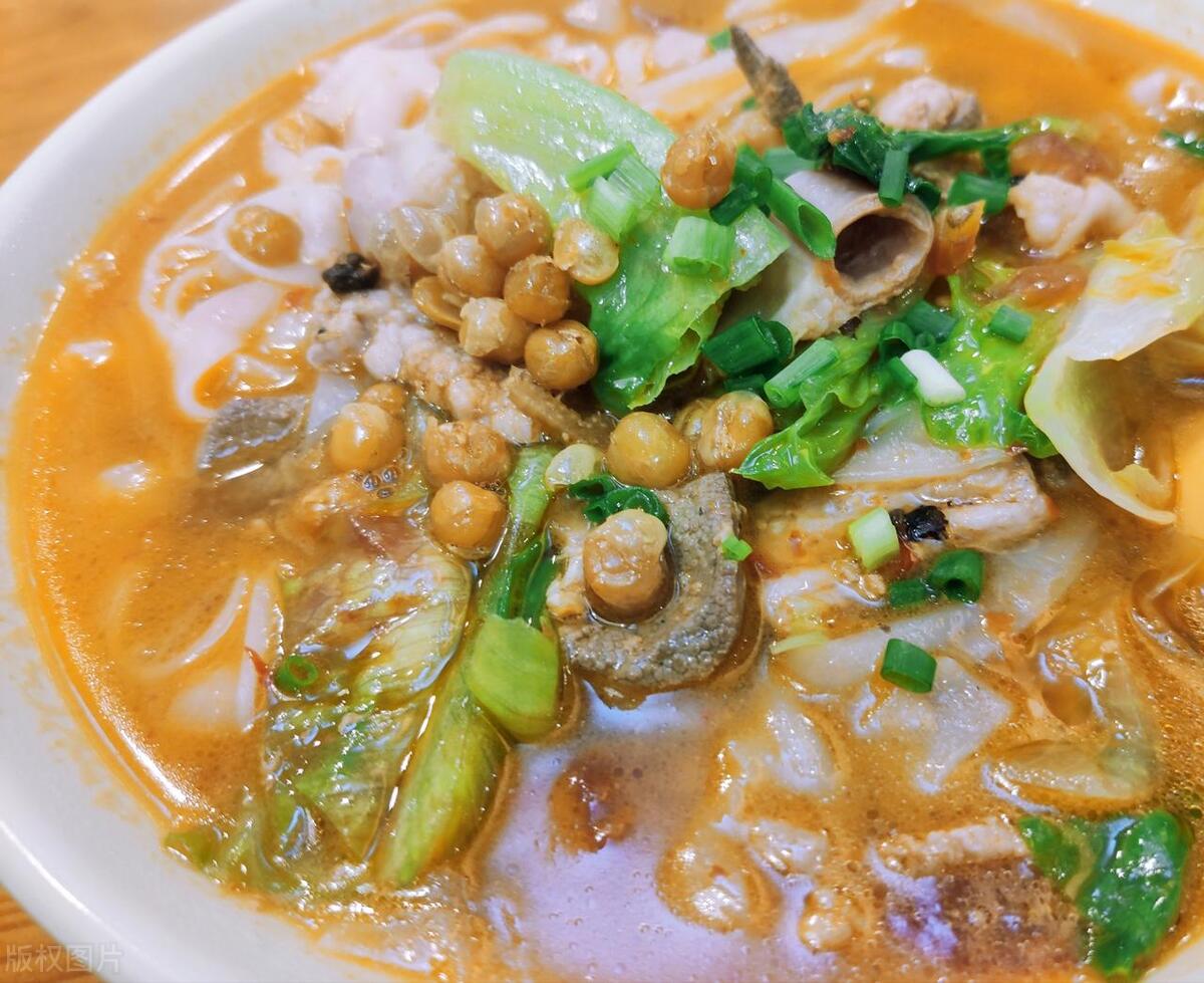 老友粉是广西南宁市及周边地区的地方风味小吃,是南宁传统小吃的金字招牌,其口味鲜辣、汤料香浓,具有开胃解腻、驱风散寒、通窍醒脑的独特功效,属于桂菜。主要食材有河粉、酸笋、豆豉、葱花、猪肉、酸豆角、生菜、醋、豆芽等;口味:酸、鲜、辣、咸、甜、香。