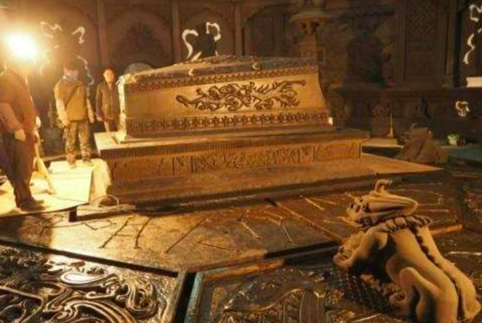 陵墓内部的奢华让所有人都震惊了,汉白玉建造的陵墓仿佛是一座“玉宫”,供桌上的珠宝闪闪发光,一座巨大的金丝楠木棺映入眼帘。