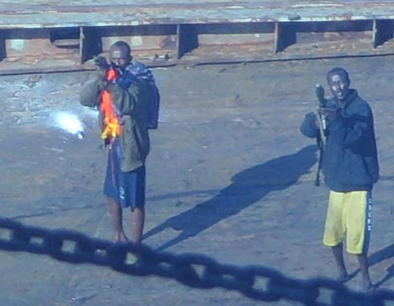 海盗小艇很快就追上了振华4号,改装后的主甲板很低,7名海盗抛出铝合金软梯,很快就爬了上来。船员们看到,这几个海盗都背着枪,其中有三支是AK47,还有一个海盗扛着火箭筒。