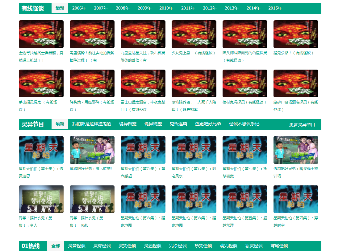 搜集各地灵异节目、灵异视频、灵异事件、有线怪谈、通灵之战、奇闻怪谈、恐怖鬼故事、未解之谜...信不信由你!