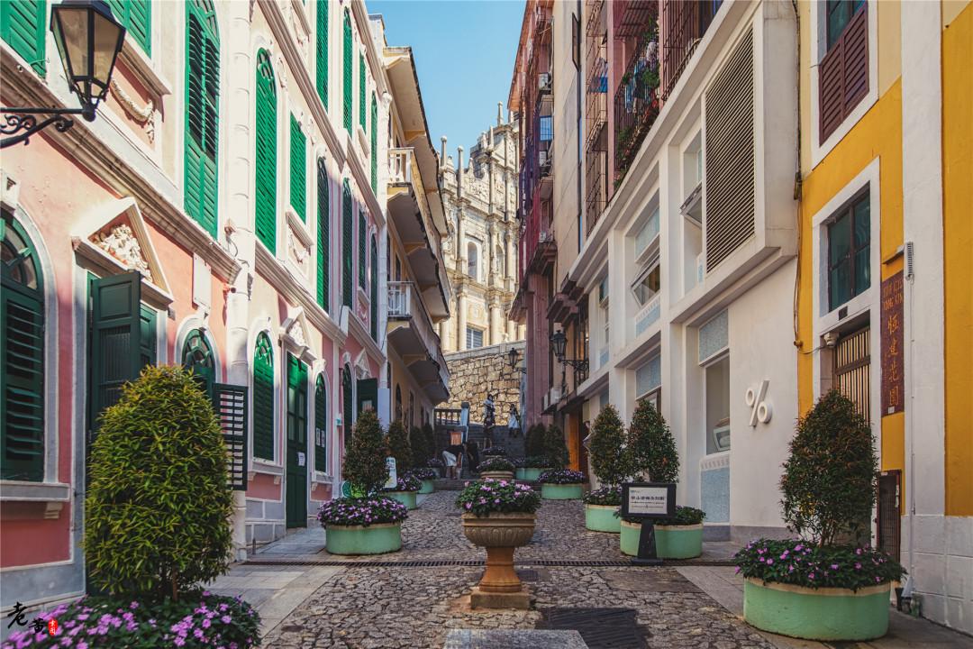 第五站,步行来到恋爱巷。这里是情侣们最合适谈天说地的地方,感受欧美的风情。恋爱巷两旁的建筑物充满了欧陆风情,走在巷里,似是置身欧洲石春小路中。这里还隐约可以拍到大三巴牌坊,可以与街景同框。值得慢慢取景拍摄。