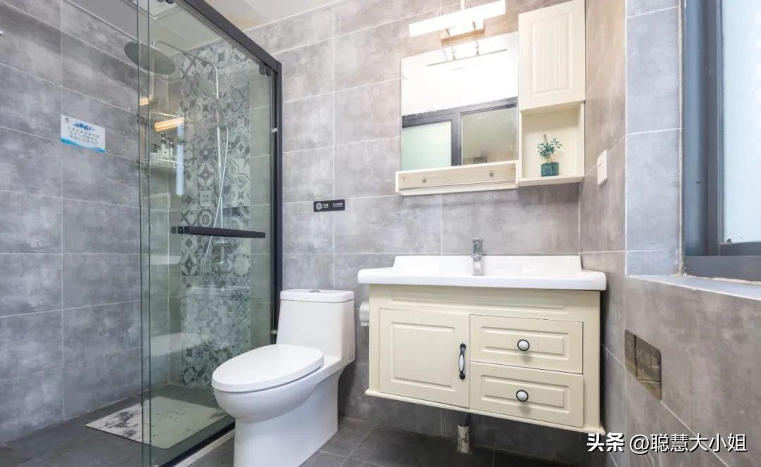 洗浴间的设计干净简洁为主,灰白色调让整个空间显得格外的清爽,干湿分离更是大大提升了卫生间的使用舒适度。