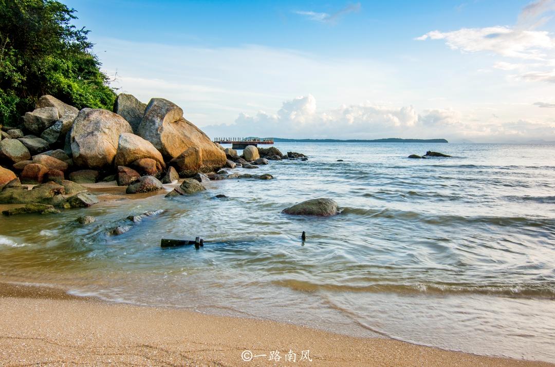 金沙湾位于大鹏半岛的下沙村,和香港九龙半岛隔海相望,距离平洲岛也只有2.25海里。这里的黄金海岸线长达3公里,气质上有点像三亚的亚龙湾、小东海等海湾,和马尔代夫、巴厘岛的景色也有几分相似之处。