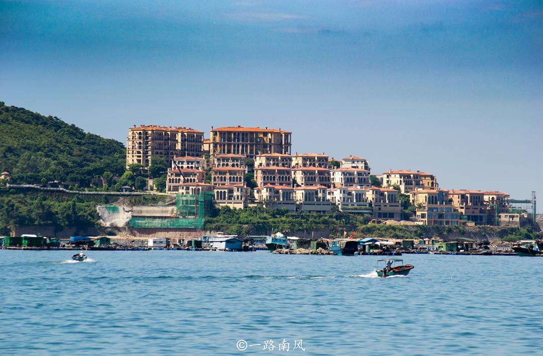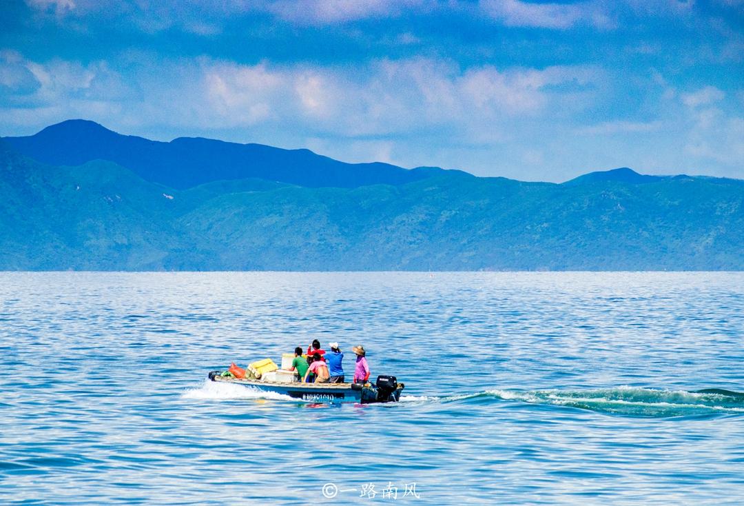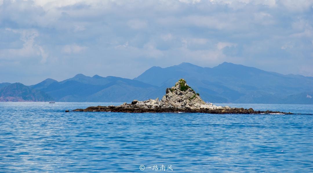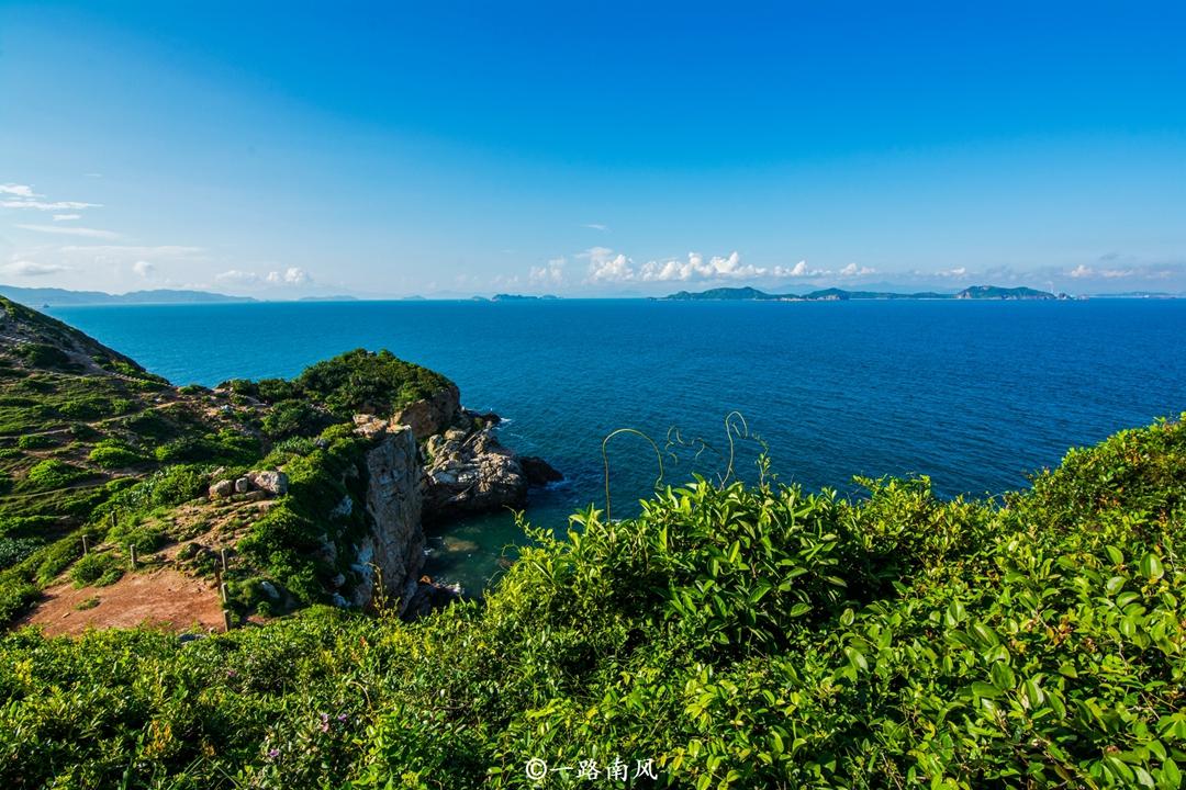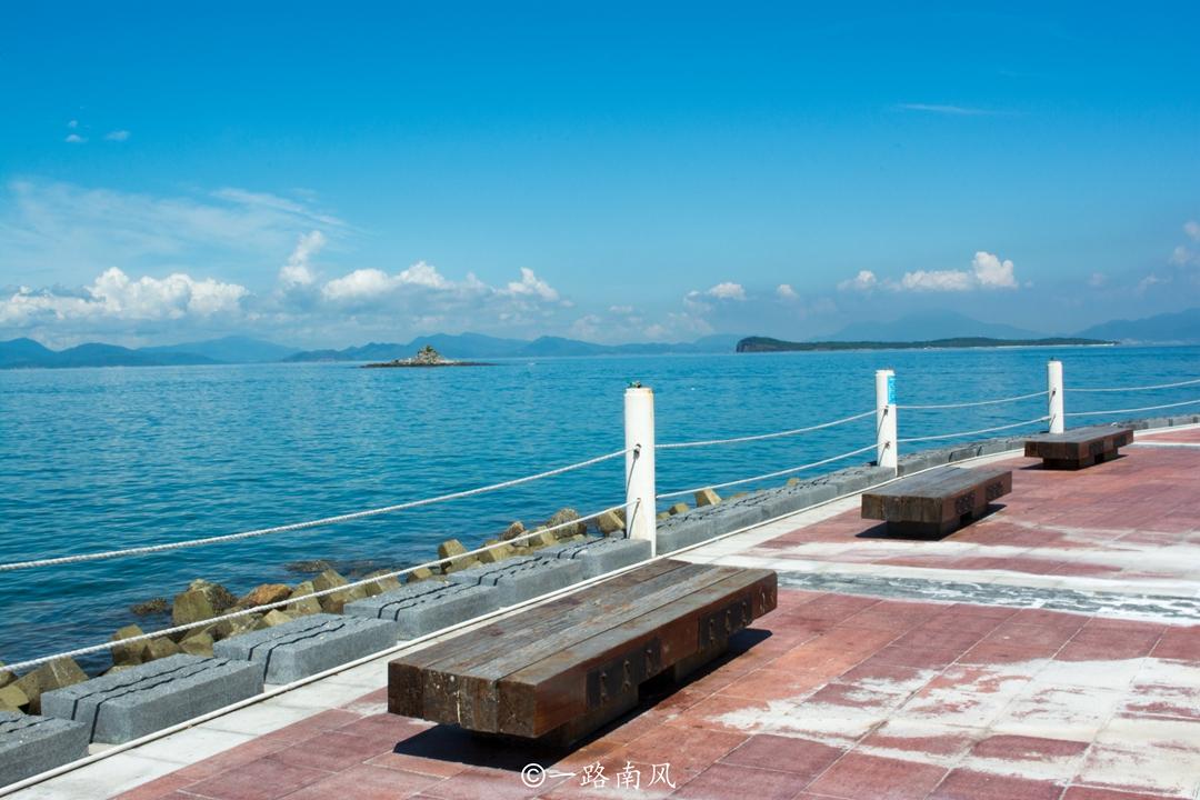 沿着海滨公路行走,但见远山连绵,快艇、渔舟往来,远处的小岛就像漂浮于海面上一样。