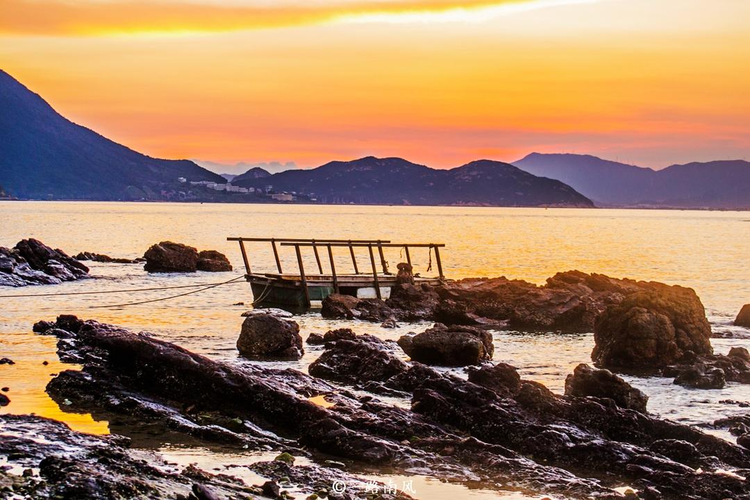 当太阳从山头慢慢滑落,最后隐入地平线之时,西边的天空变成橙黄色调,海水也仿佛染上橘子色,伫立在海边,看着眼前如此瑰丽的景色,忍不住用手机和相机记录下经典的瞬间。