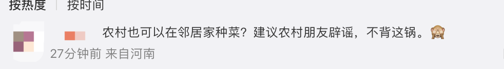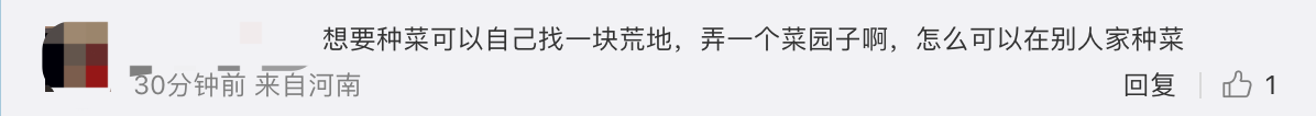 网友也纷纷对邻居行为进行批评,“农村也可以在邻居家种菜?建议农村朋友辟谣,不背这锅”,“想要种菜可以自己找一块荒地,弄一个菜园子啊,怎么可以在别人家种菜”。